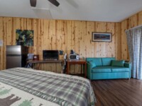 This unit is located at the northern ends of the lodge are Deluxe Plus rooms. These rooms have walls finished with wood panels which exude an ambiance of warmth and coziness. Apart from the king bed, there is also a pull-out sofa. These rooms are ideal for a couple, but could just as easily accommodate a family of three.