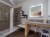 The Deluxe Plus rooms include a walk in shower, hair dryer, a full-size refrigerator with a freezer, microwave, high-definition television, wireless internet, and heating and air conditioning, as some of the in-room amenities. Rooms are nonsmoking.